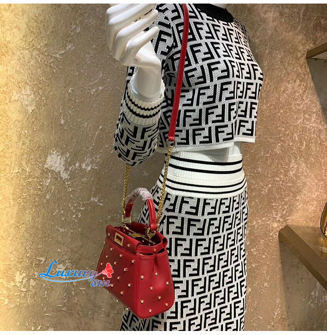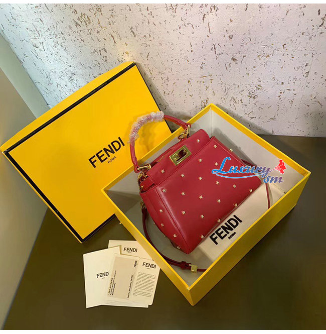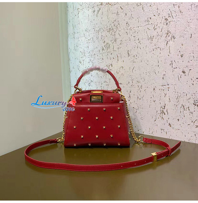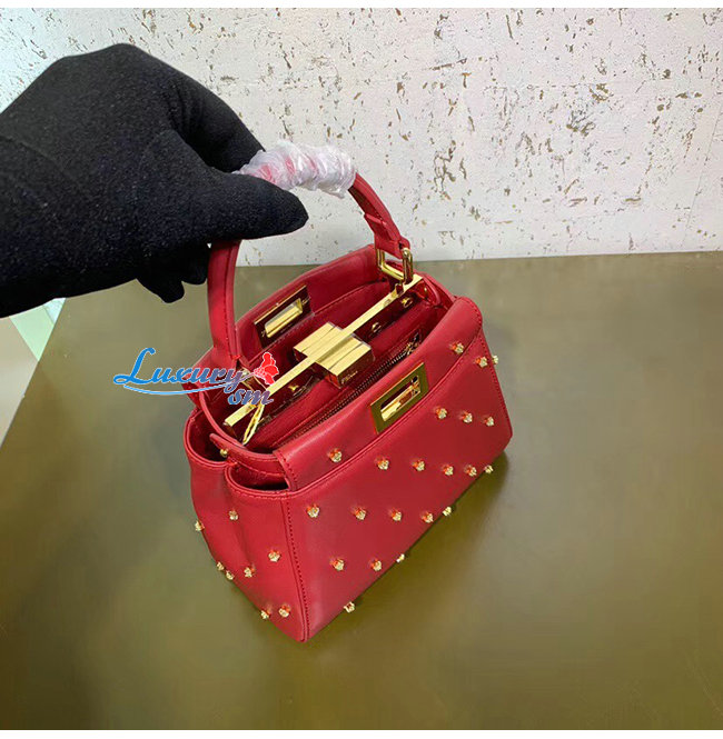 [스페셜오더]FENDI-8BN309 펜디 레드 양가죽 스터드 장식 피카부 아이코닉 XS
