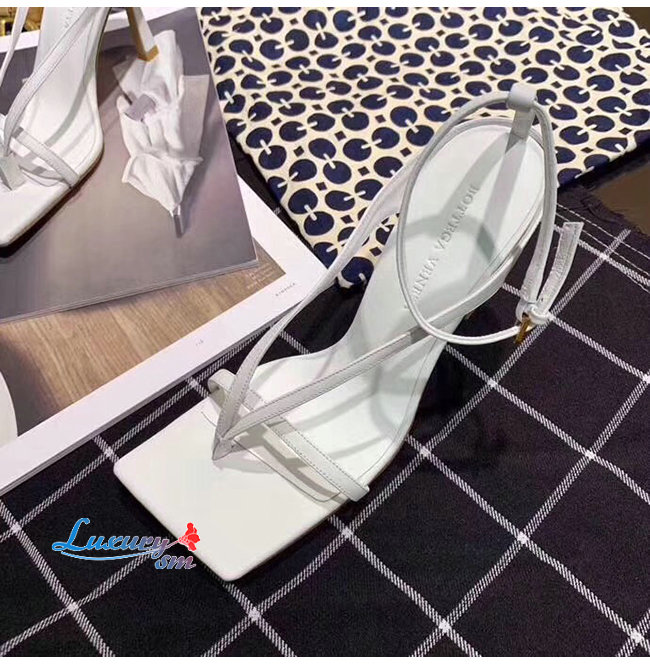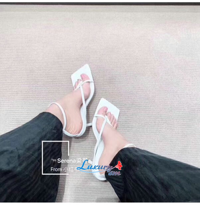 긴 사각 형 형태의 밑창이 돋보 이는 앵클 스트랩 샌들