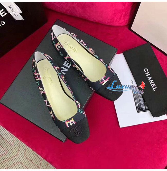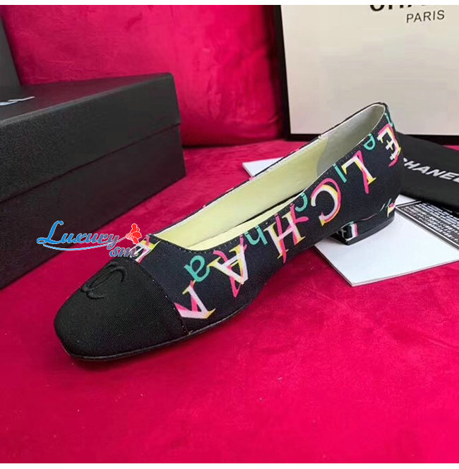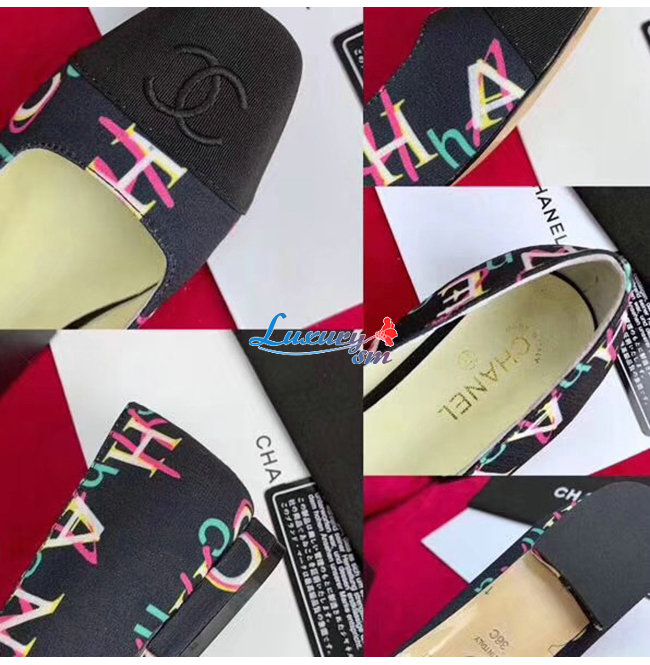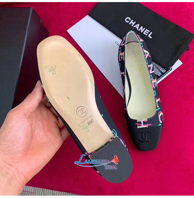 CHANEL-G34785 샤넬 블랙 페브릭 그로그랭 플랫 슈즈