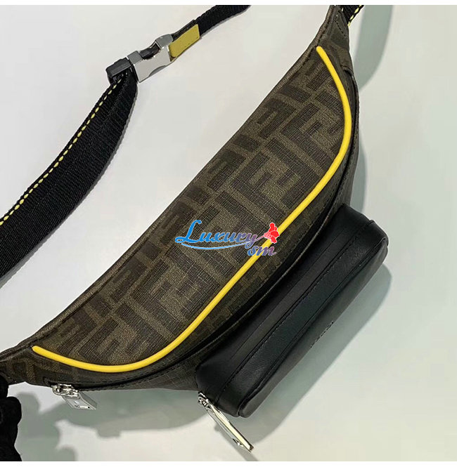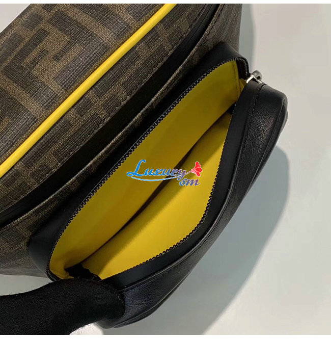 브라운 컬러의 FF 모티프, 블랙 가죽,옐로우 파이핑