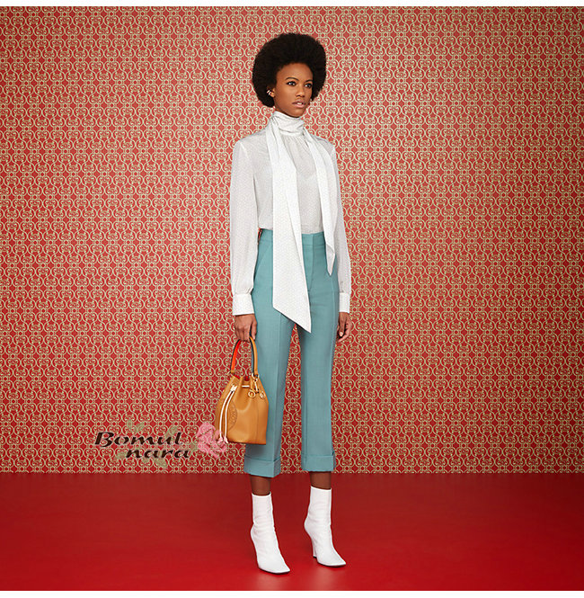 2가지 컬러의 가죽 디테일. 골드 피니싱 메탈웨어.