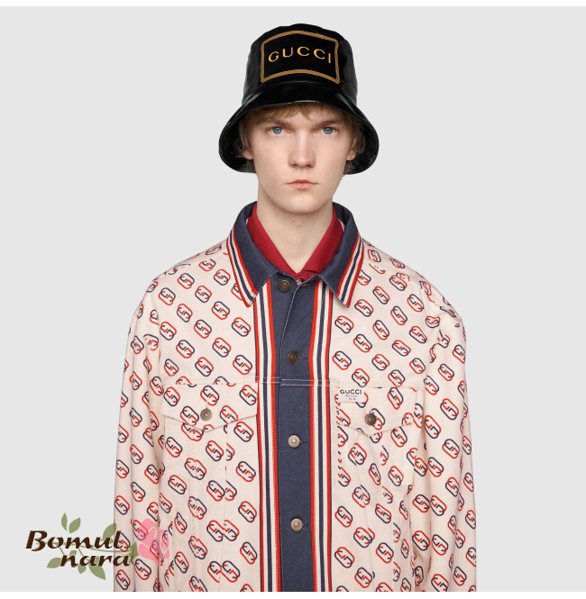 [스페셜오더]GUCCI-576371 1000 구찌 블랙 프레임 프린트 페도라 벙거지 모자