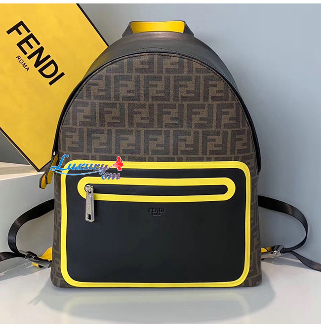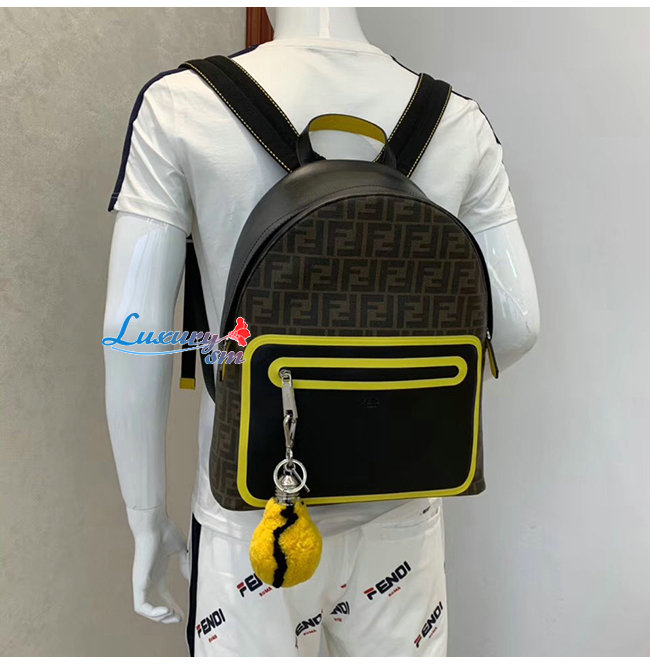 [스페셜오더]FENDI-7VZ042 펜디 브라운 FF 페브릭 Fendi Mania 레터링 장식 백팩