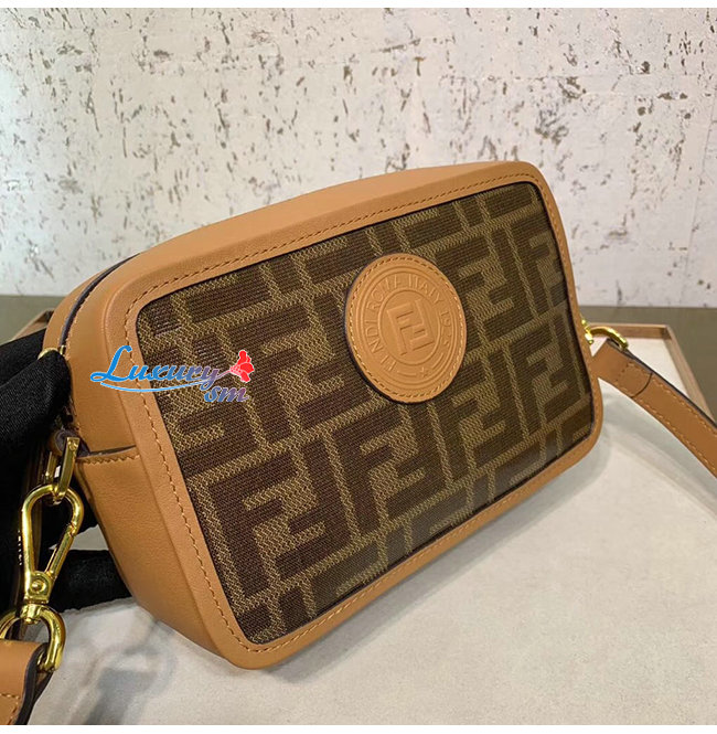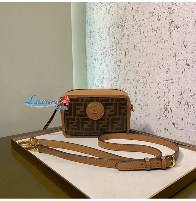 글레이즈드 패브릭 소재 및 브라운 FF 모티프 장식 라운드
