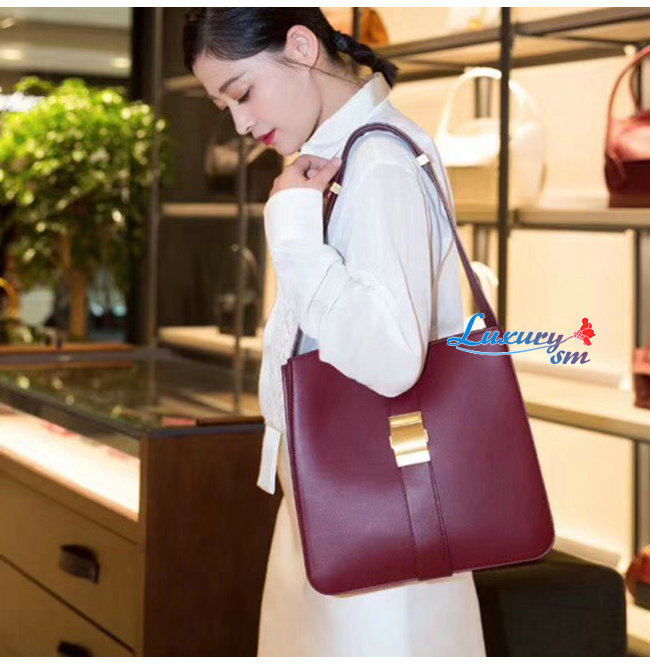 인그레이빙 클래스프를 갖춘 슬림한 숄더 백 골드 마감