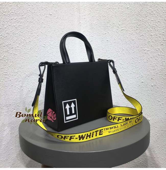 오프화이트 옐로우 스트랩이 포인트인 박스백입니다.