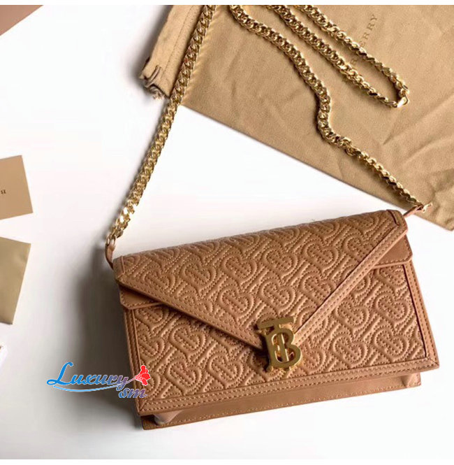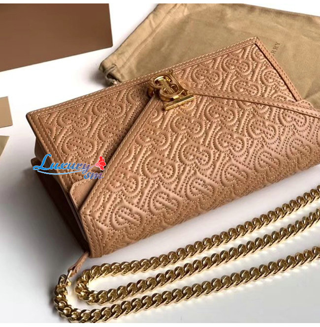 [스페셜오더]BURBERRY-80159801 버버리 허니 양가죽 스몰 퀼트 모노그램 TB 엔벨로프 클러치