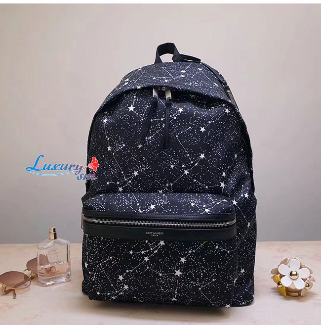 SAINT LAURENT-534967 생 로랑 블랙 시티 캔버스 별자리 프린트 백팩