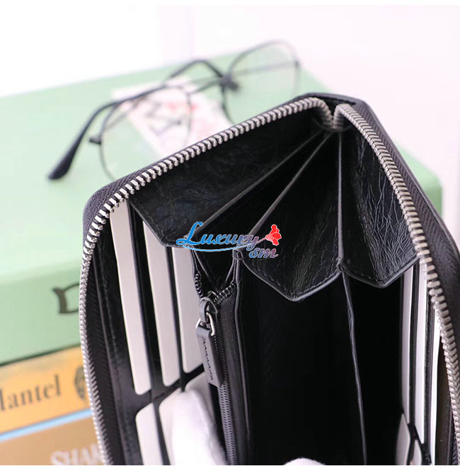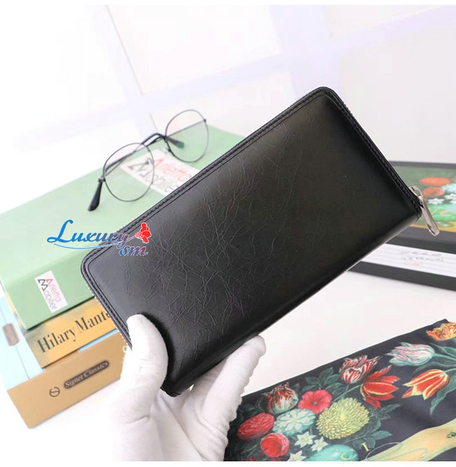 어라운드 지갑은 부드러운 블랙 가죽으로 제작되어