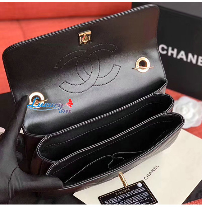 [스페셜오더]CHANEL-A92236 샤넬 블랙 램스킨 골드메탈 핸들 장식 스몰 플랩백