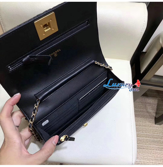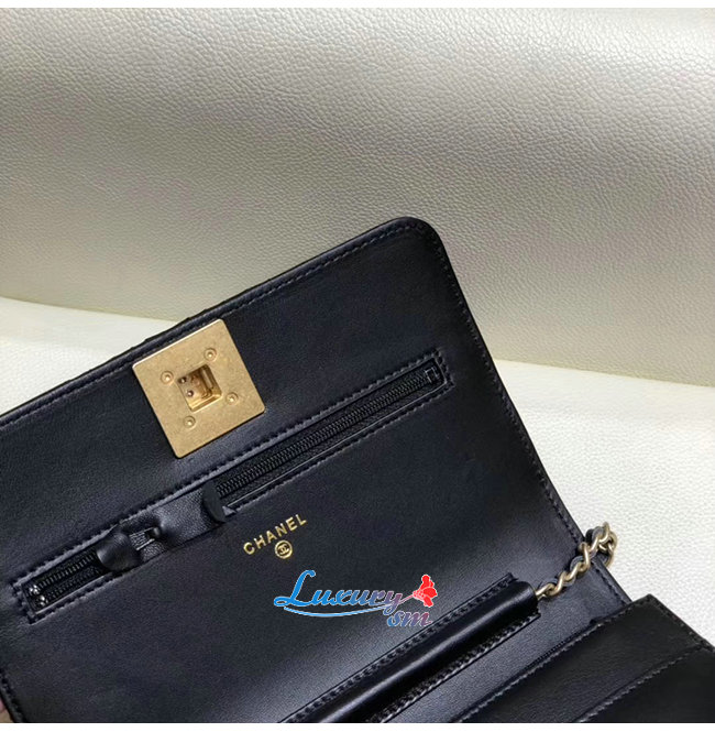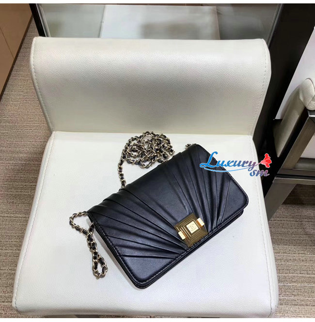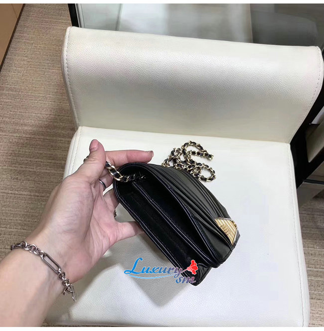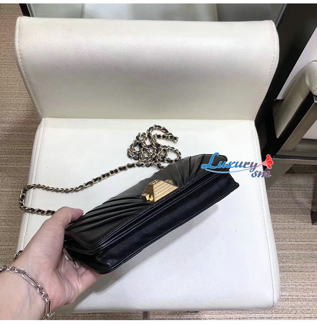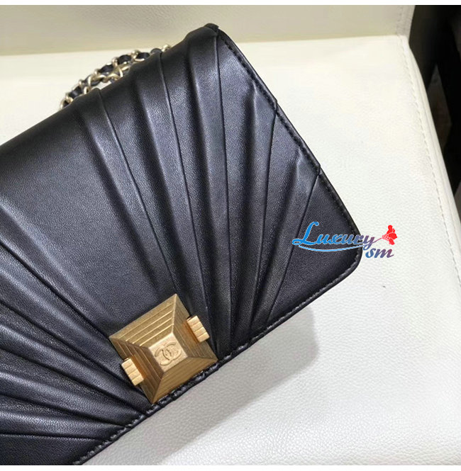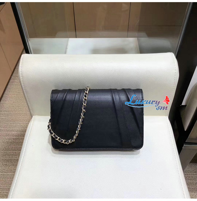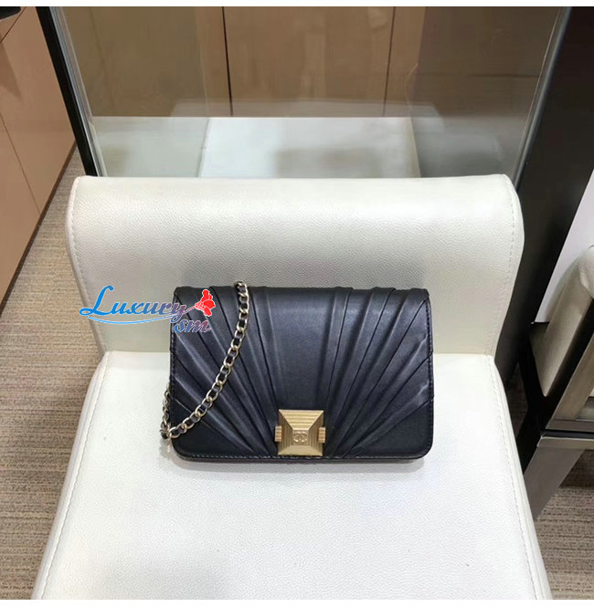 [스페셜오더]CHANEL-AP0388 샤넬 블랙 플리츠 램스킨 골드메탈 체인 지갑