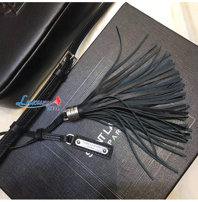 가죽태슬,중앙에 인터로킹 YSL 시그니처가 양각으로