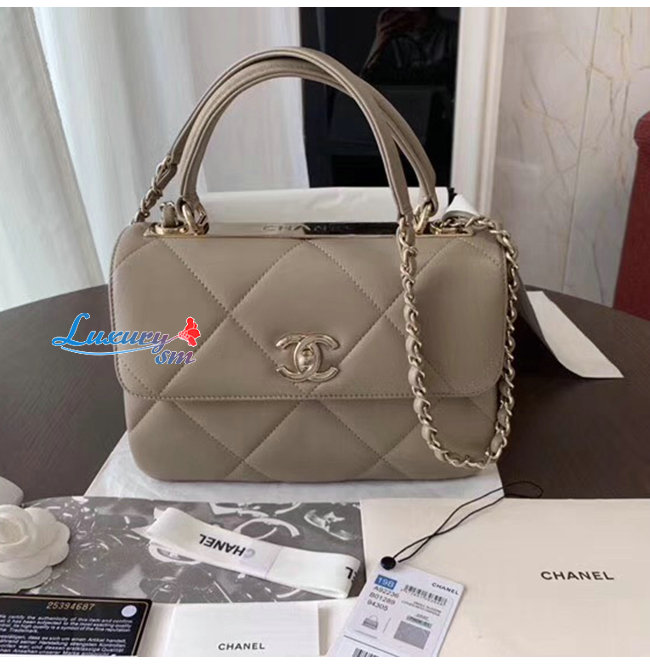 [스페셜오더]CHANEL-A92236 샤넬 그레이 램스킨 골드메탈 핸들 장식 스몰 플랩백