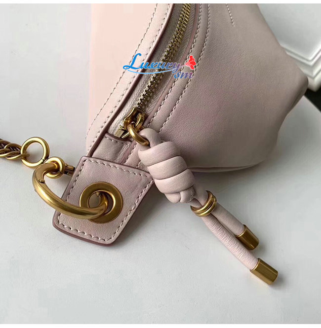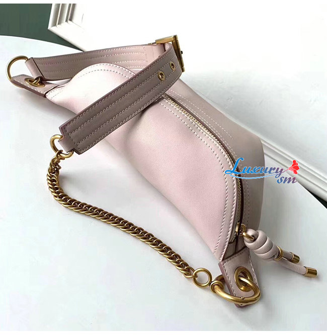 스무스 가죽 소재의 휩 벨트 백,앤틱 골드 마감 메탈