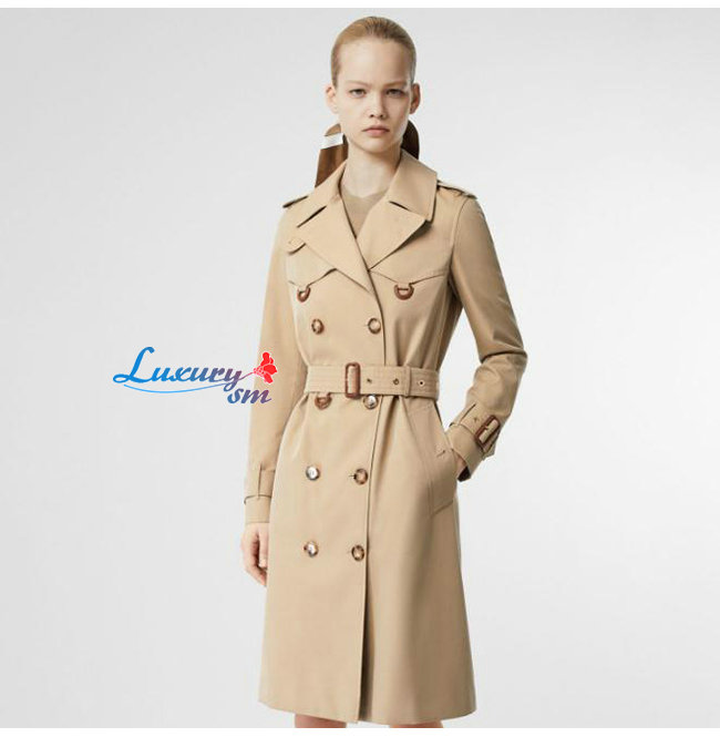 BURBERRY-80169701 버버리 허니 가죽 D링 디테일 코튼 개버딘 트렌치코트