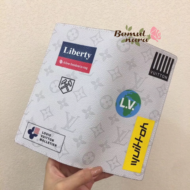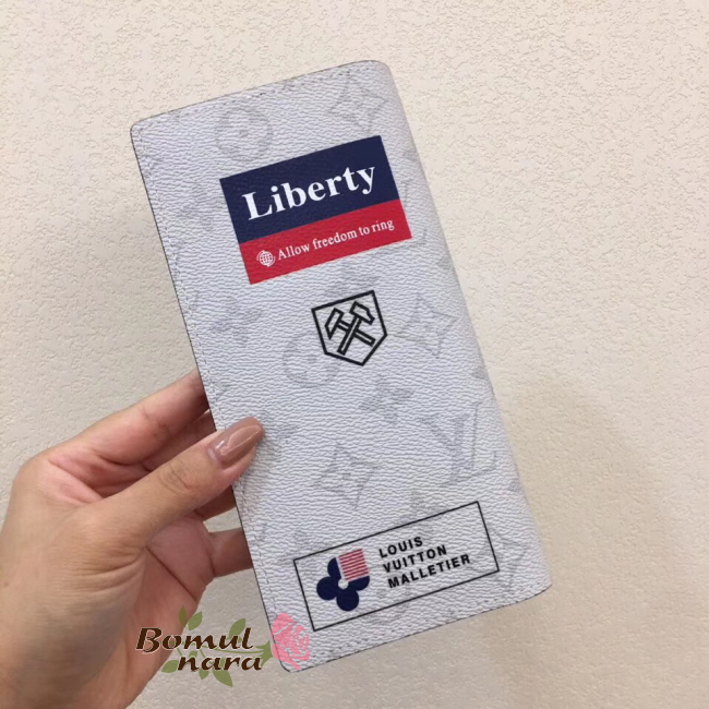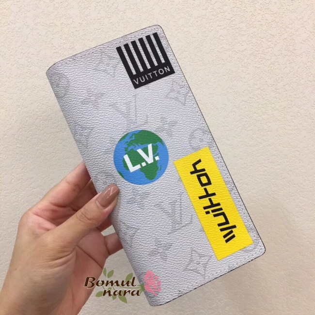LOUIS VUITTON-M67822 루이비통 모노그램 화이트 스티커 프린트 브라짜 레플리카 남성 장지갑