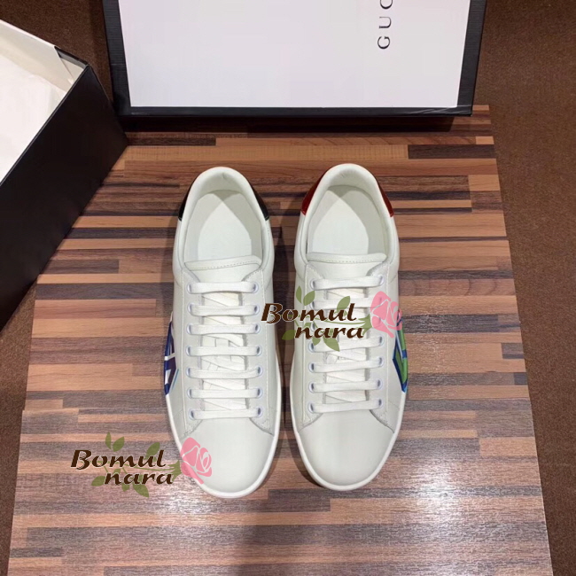 GUCCI-501908 9095 구찌 에이스 로드 자수 화이트 가죽 로우탑 스니커즈 남녀공용