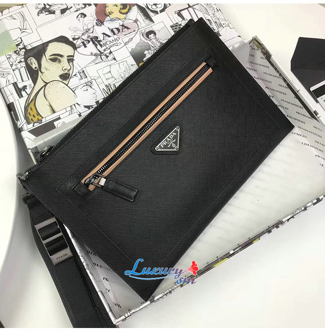 [스페셜오더]PRADA-2NH009 프라다 블랙 사피아노 가죽 파우치