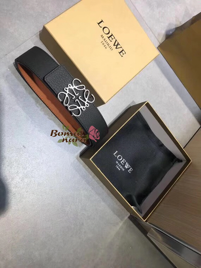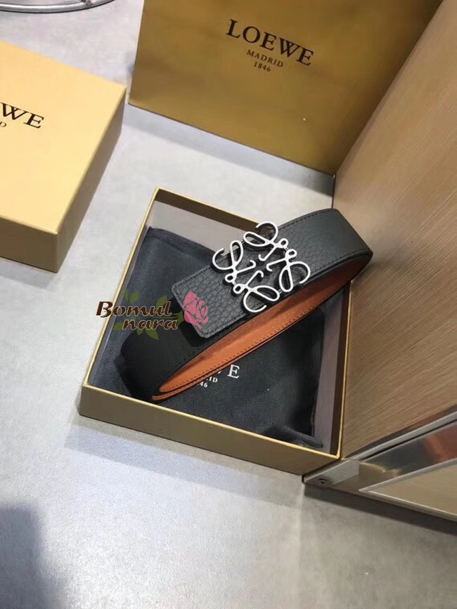 LOEWE-515 로에베 블랙 Palladium 팔라듐 Anagram 아나그램 남성용 벨트 40MM