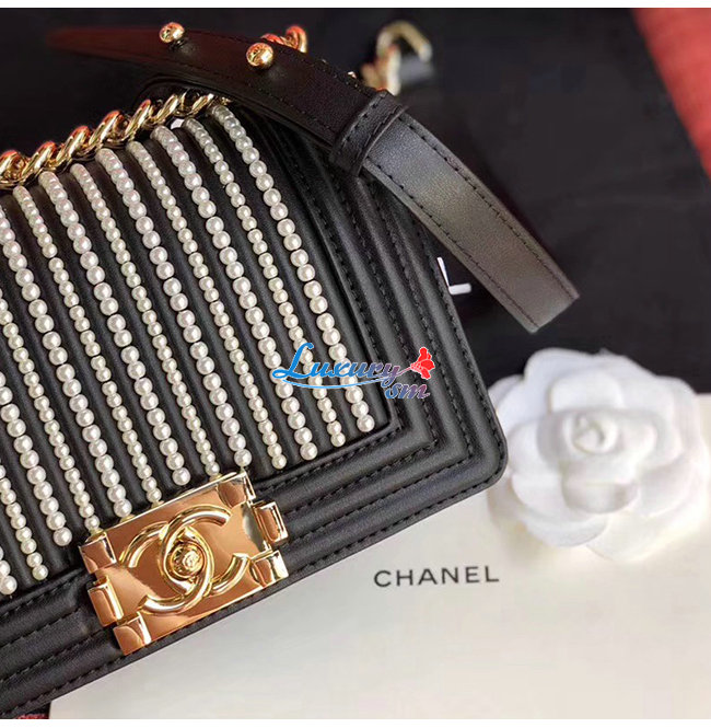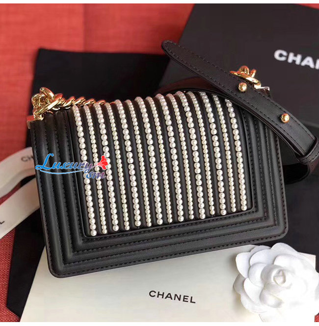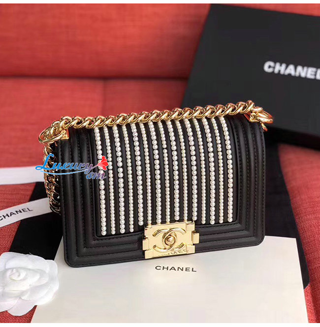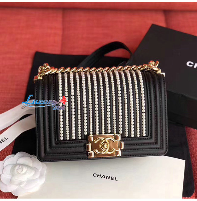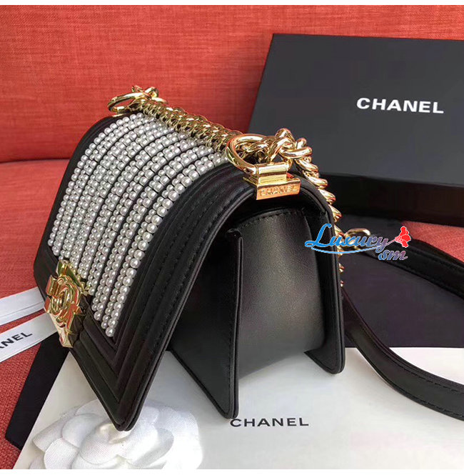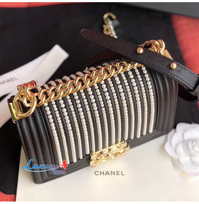[스페셜오더]CHANEL-A67085 샤넬 블랙 카프스킨 펄 골드메탈 보이 샤넬 스몰 플랩백