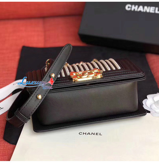 [스페셜오더]CHANEL-A67085 샤넬 블랙 골드 메탈릭 램스킨 골드메탈 보이 샤넬 스몰 플랩백