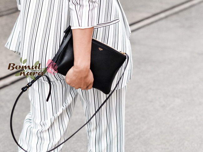 가방전면 CELINE 골드 레터링로고는 트리오가방만의