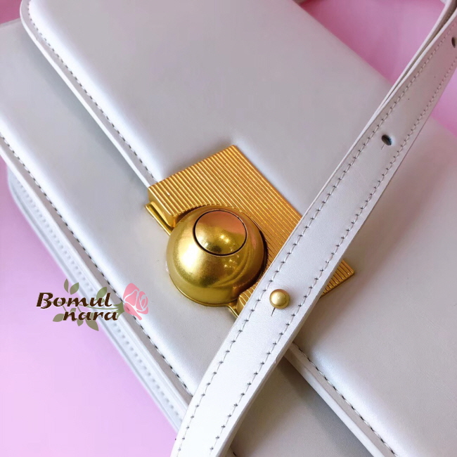 구체 형태의 골드메탈 잠금장치가 돋보이는 보테가