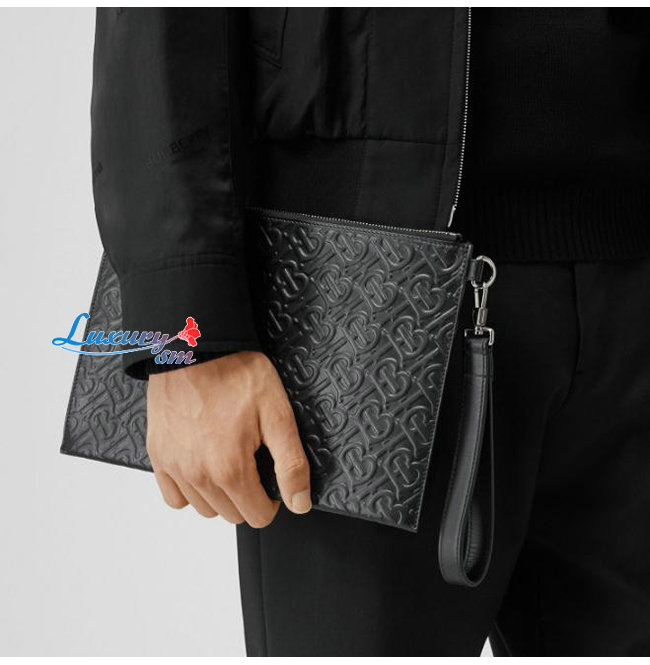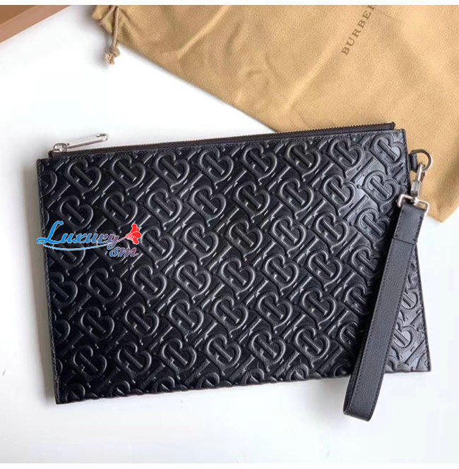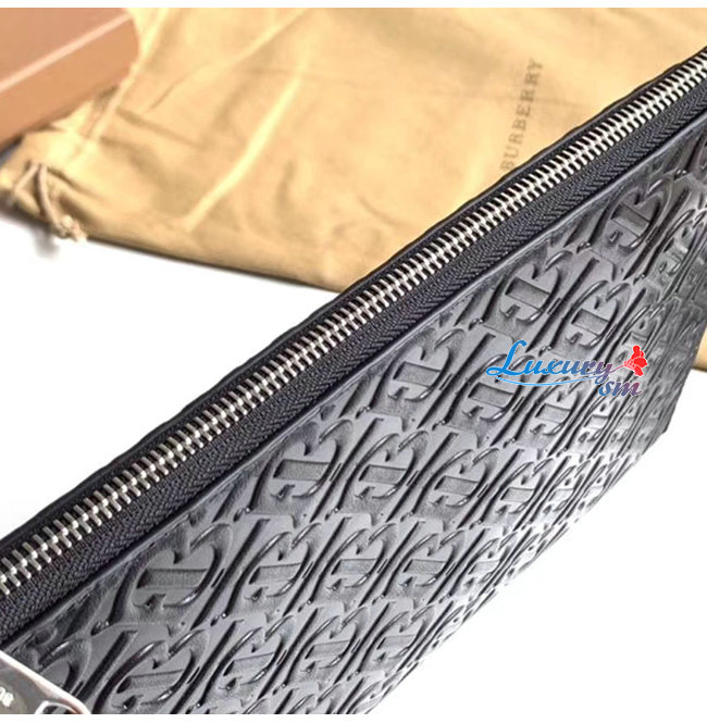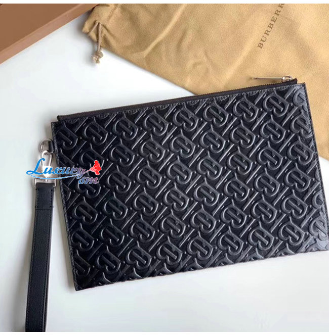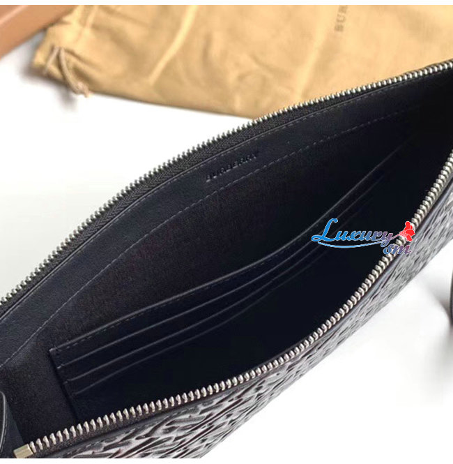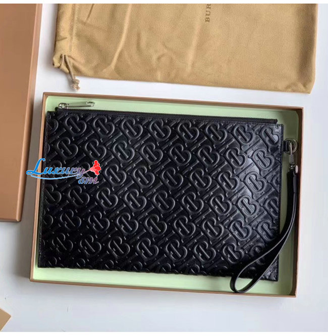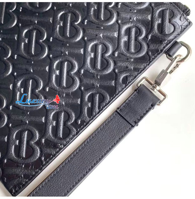 [스페셜오더]BURBERRY-80092061 버버리 블랙 모노그램 가죽 지퍼 파우치