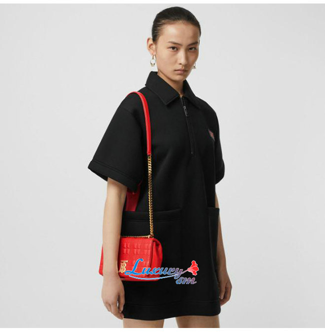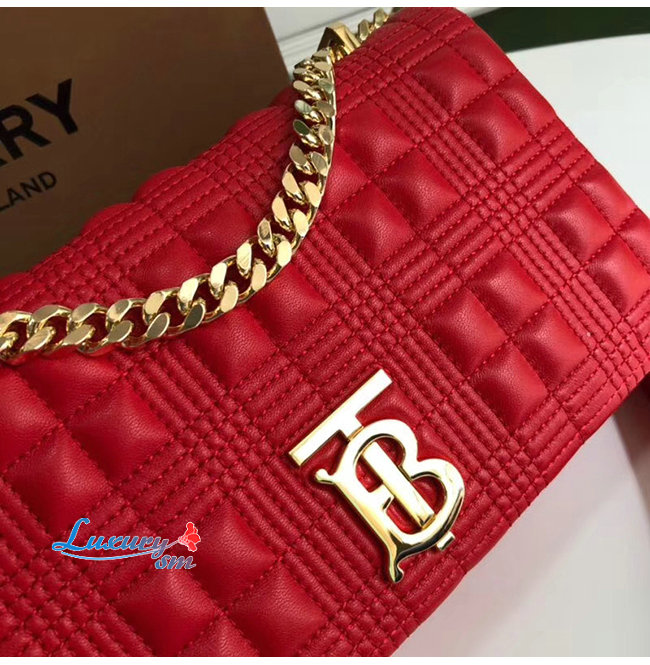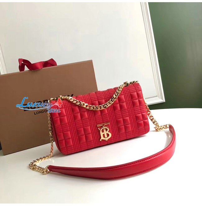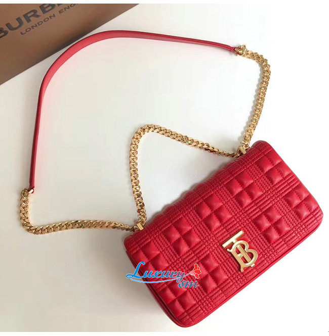 [스페셜오더]BURBERRY-80214921 버버리 레드 양가죽 스몰 퀼트 체크 롤라 백
