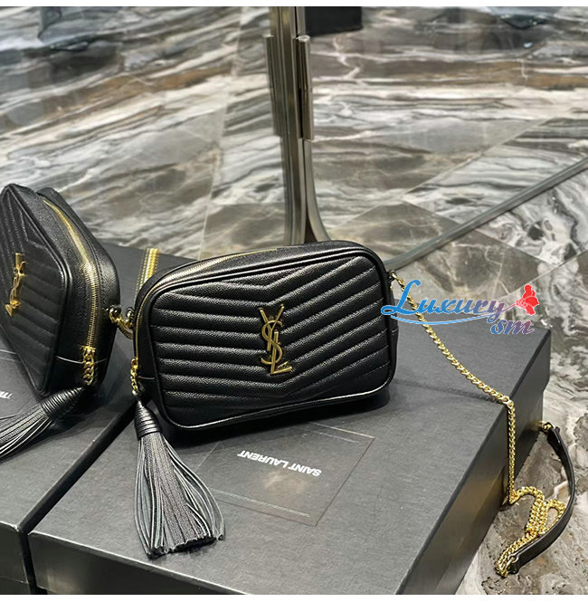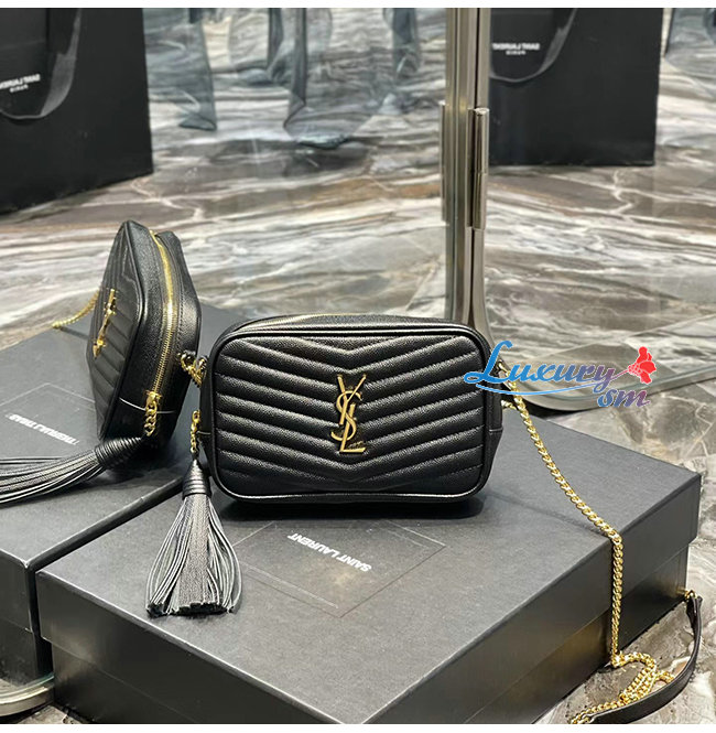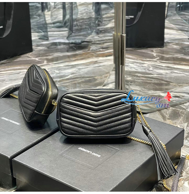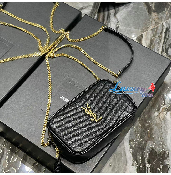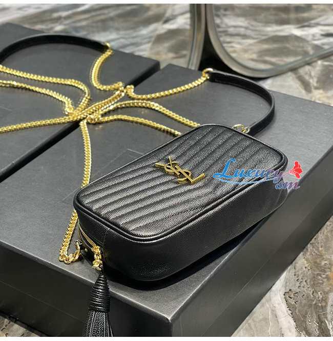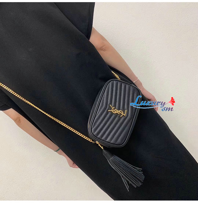 [스페셜오더]SAINT LAURENT-585040 생 로랑 블랙 마틀라세 그레인 송아지 가죽 루 미니백