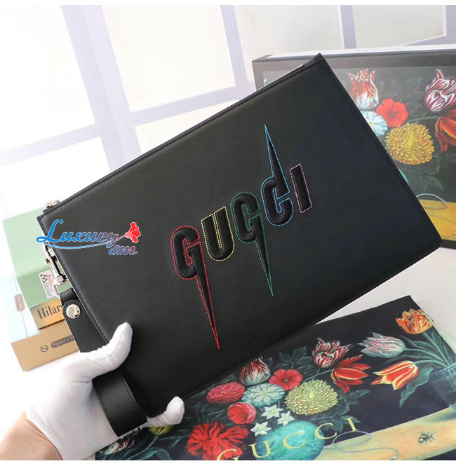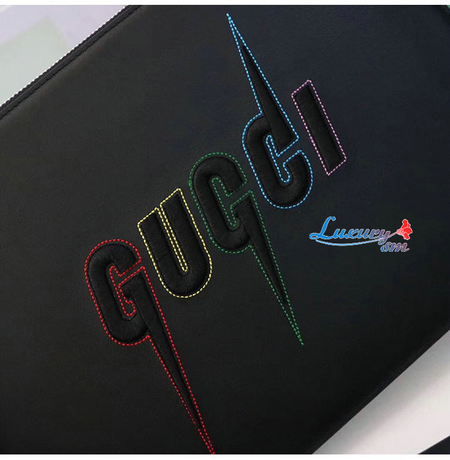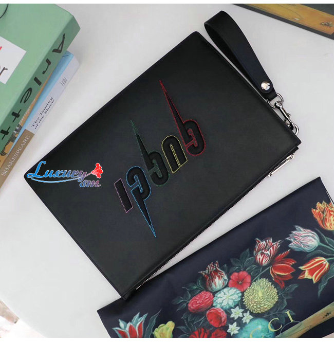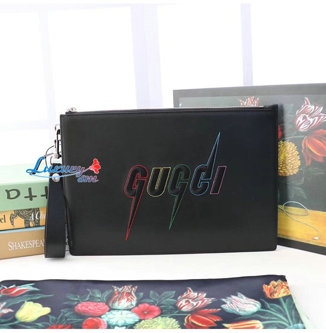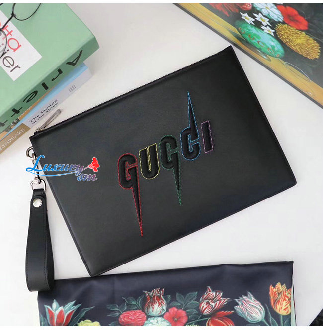GUCCI-597678 1058 구찌 블랙 가죽 블레이드 자수 파우치