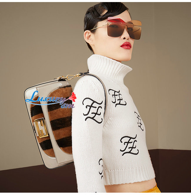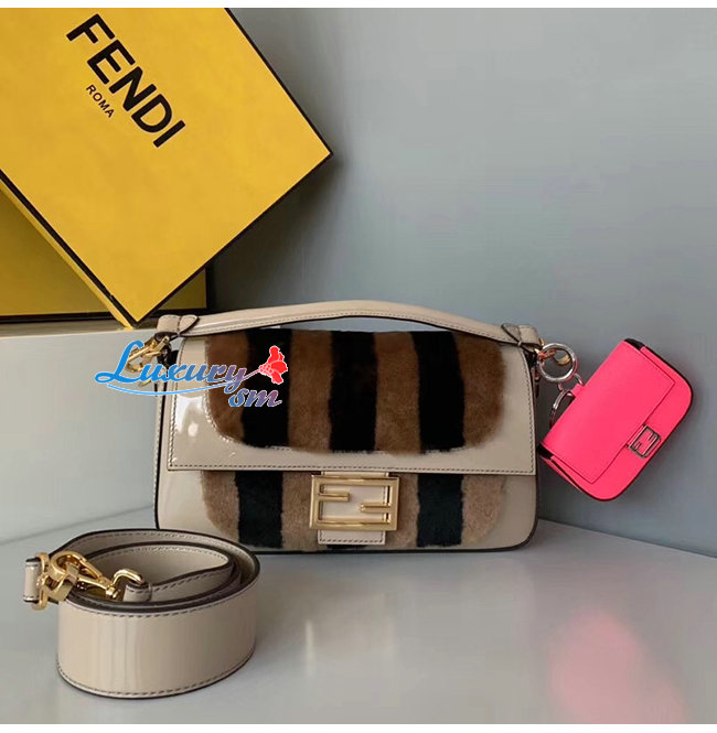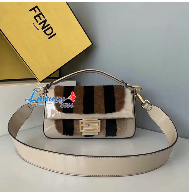 [스페셜오더]FENDI-8BR600 펜디 베이지 페이턴트 가죽 브라운/블랙 페퀸 스트라이프 양가죽 바게트