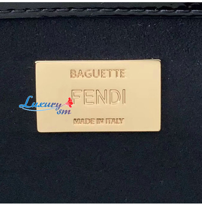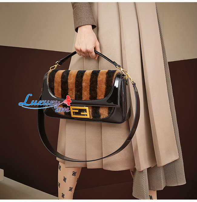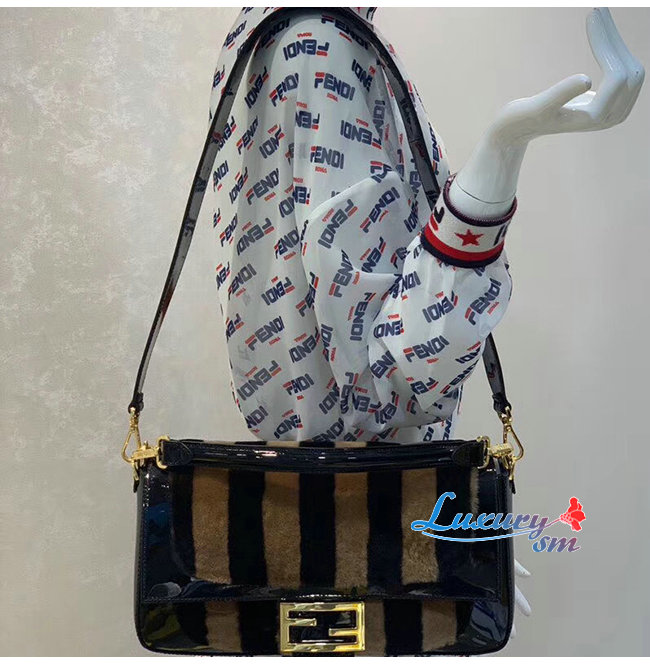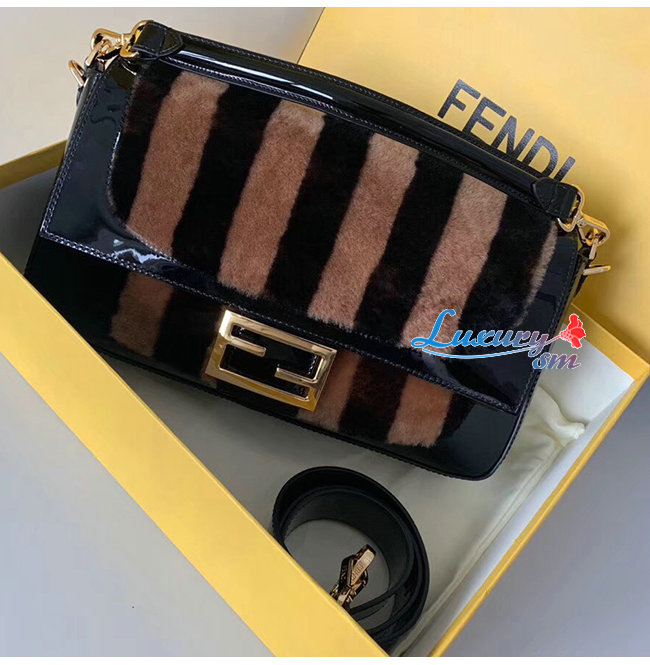 [스페셜오더]FENDI-8BR771 펜디 랙 페이턴트 가죽 브라운/블랙 페퀸 스트라이프 양가죽 라지 바게트