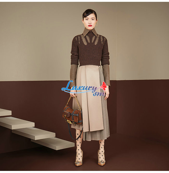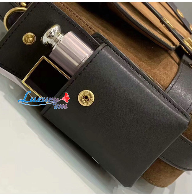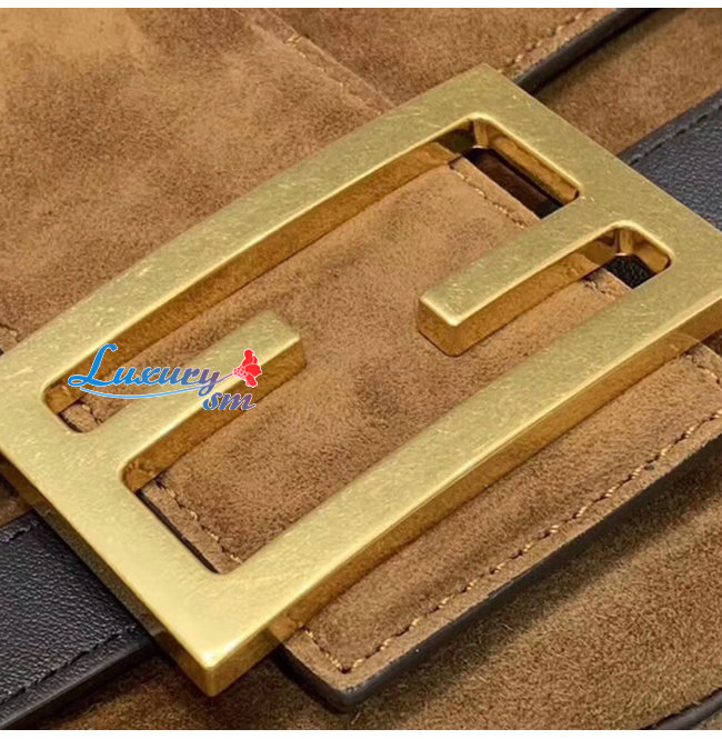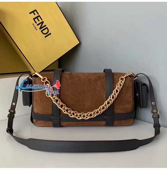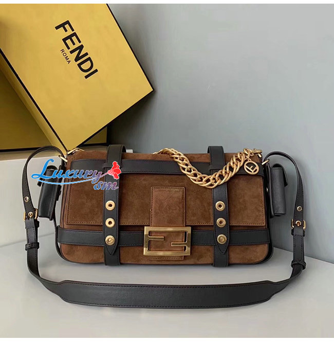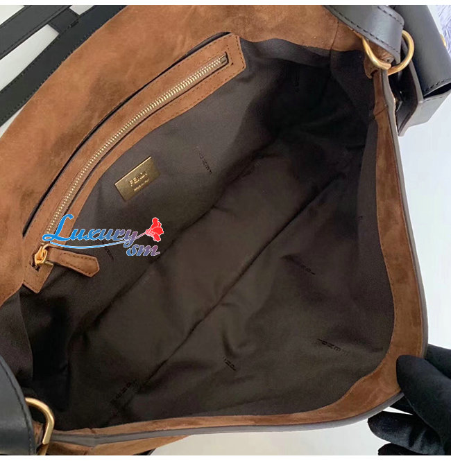 [스페셜오더]FENDI-8BR778 펜디 브라운 스웨이드 가죽 블랙 가죽 디테일 케이지 바게트