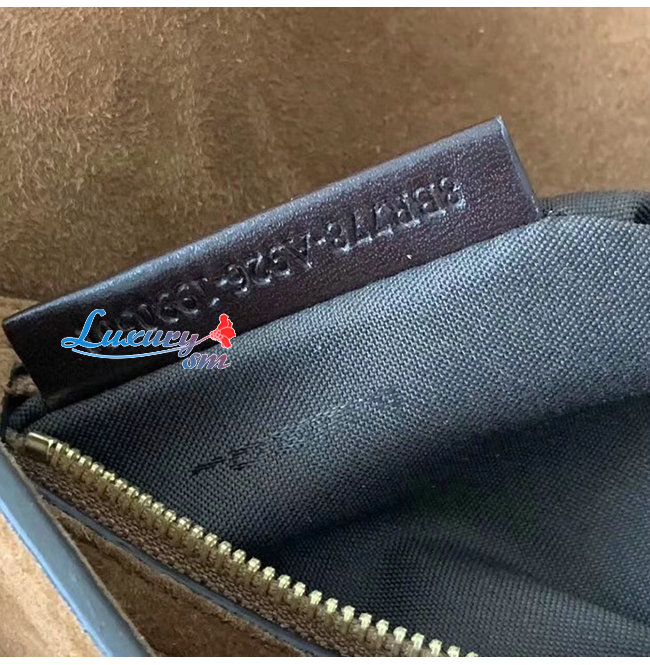 지퍼 포켓 라이닝, 브라운 컬러의 스웨이드 소재.