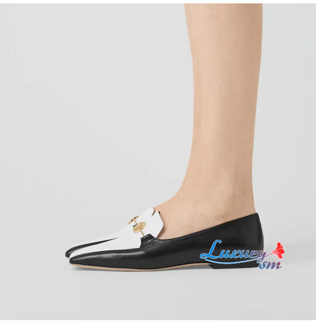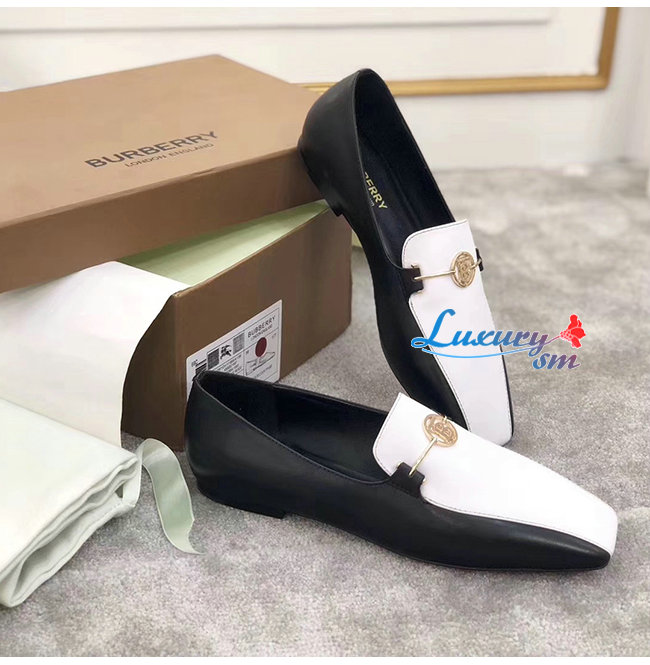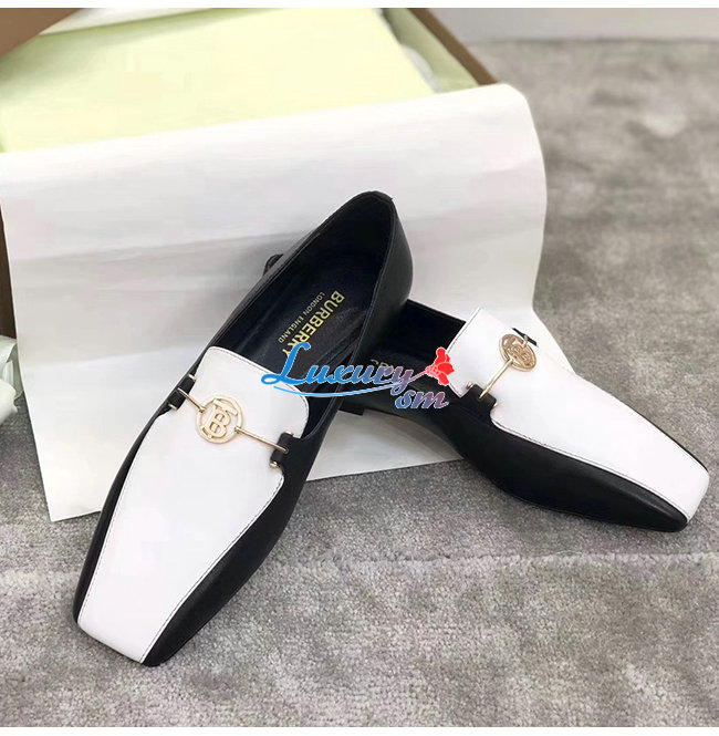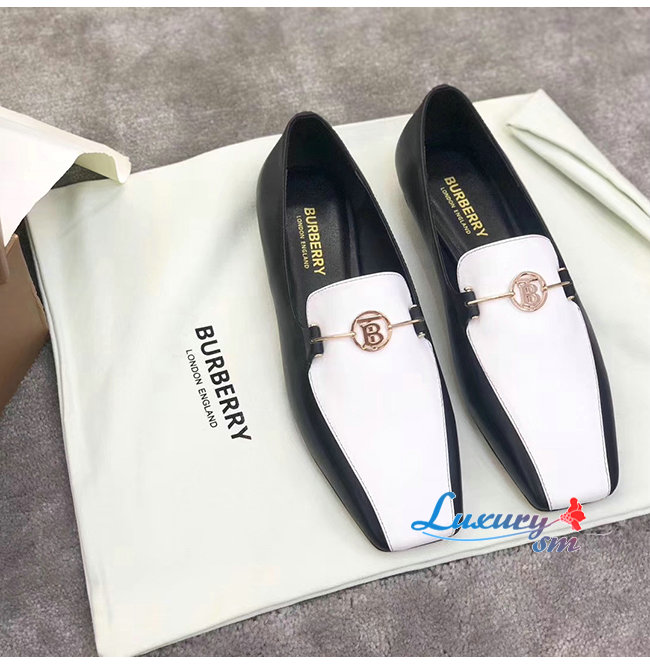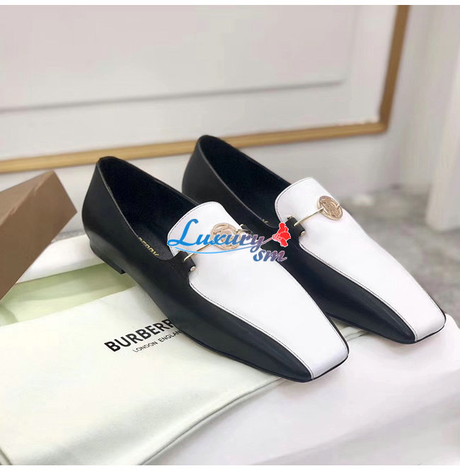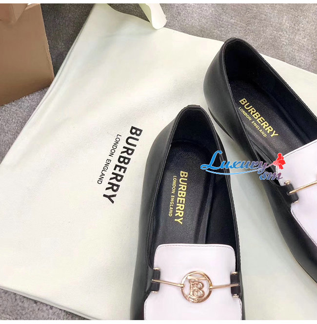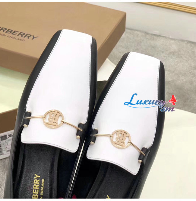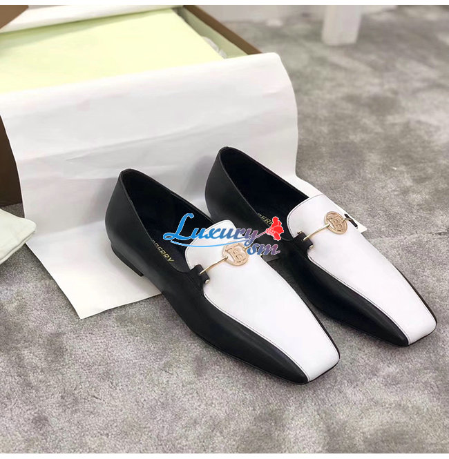 BURBERRY-80155691 버버리 블랙/화이트 송아지 가죽 모노그램 모티프 로퍼