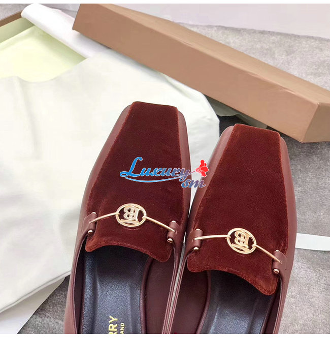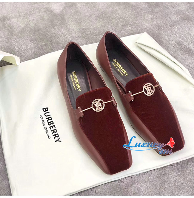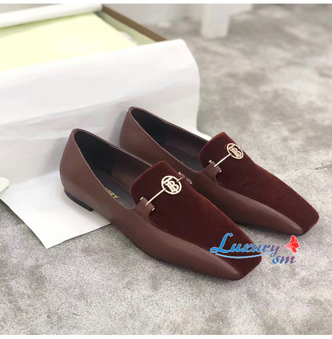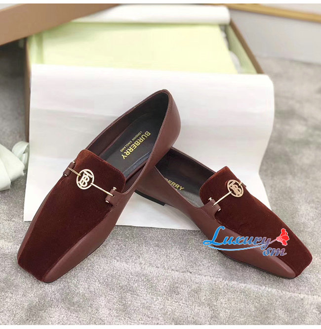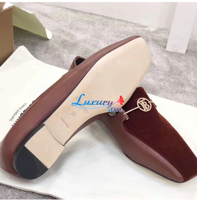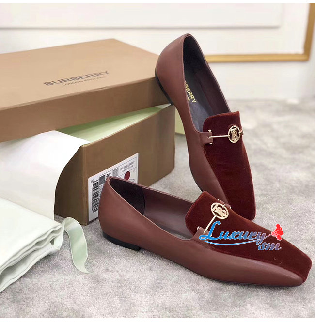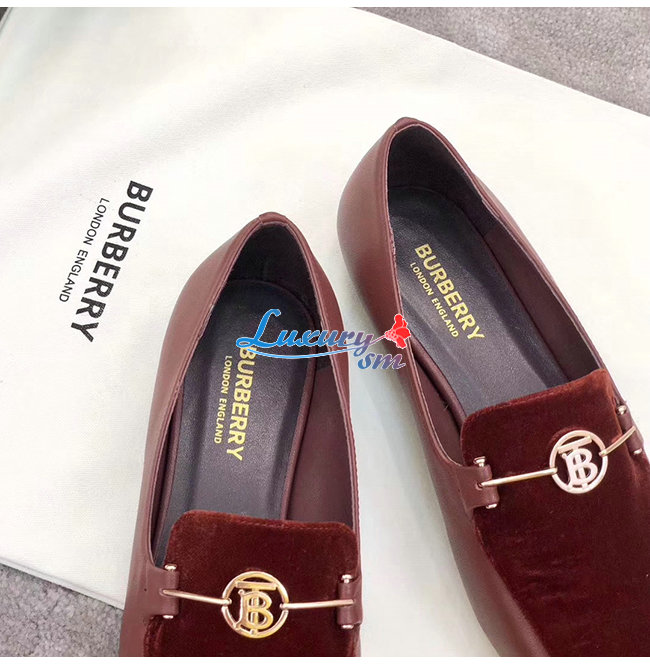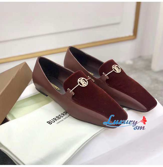 BURBERRY-80163861 버버리 다크 초콜릿 / 탠 송아지 가죽 벨벳 모노그램 모티프 로퍼