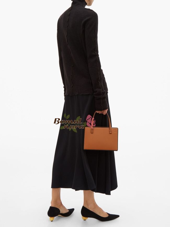 정면쪽 로에베 음각 로고 스티칭기법은 로에베브랜드의