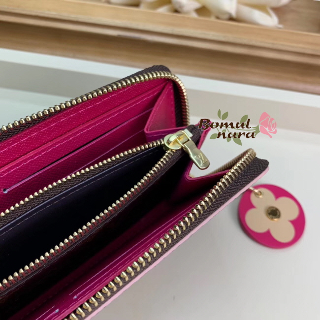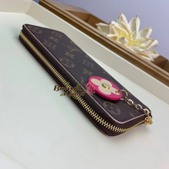 [스페셜오더]LOUIS VUITTON-M64161 루이비통 핑크 모노그램 앙프렝뜨 플라워 참 장식 클레망스 월릿