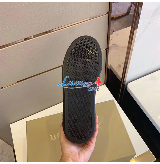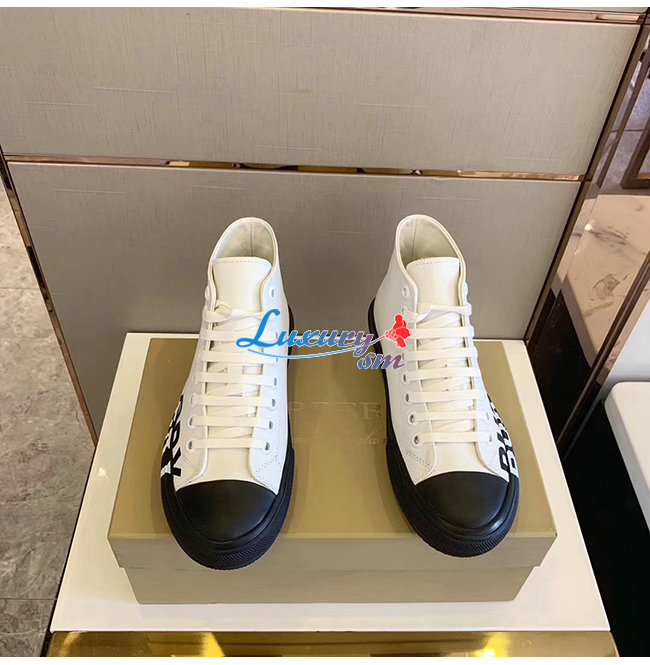 BURBERRY-80163021 버버리 화이트/블랙 로고 프린트 송아지 가죽 개버딘 하이톱 스니커즈