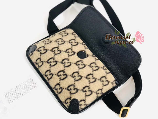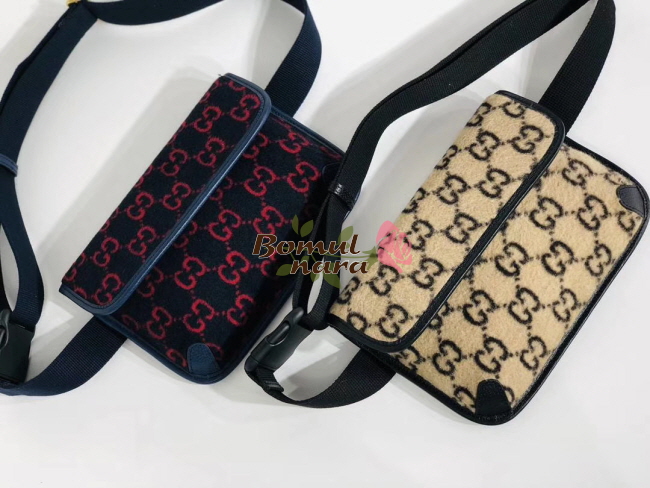 울 소재의 GG 패턴이 특징인 남녀공용 벨트백입니다.