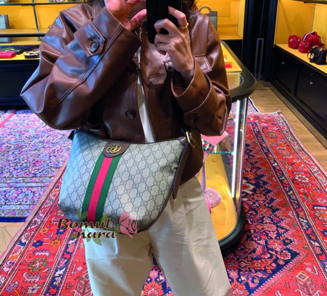 구찌 오리지널 패턴과 웹 디테일로 빈티지 하면서도