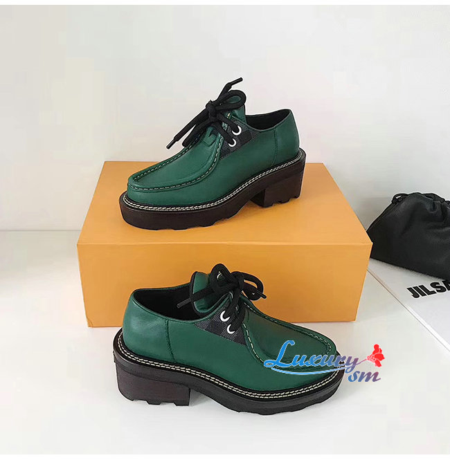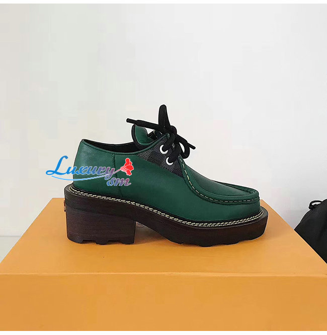 그린 색상 송아지 가죽 소재의 LV보부르 플랫폼 더비