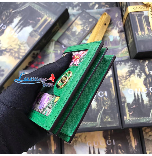 [스페셜오더]GUCCI-523155 8709 구찌 오피디아 그린 GG 플로라 카드 케이스 지갑