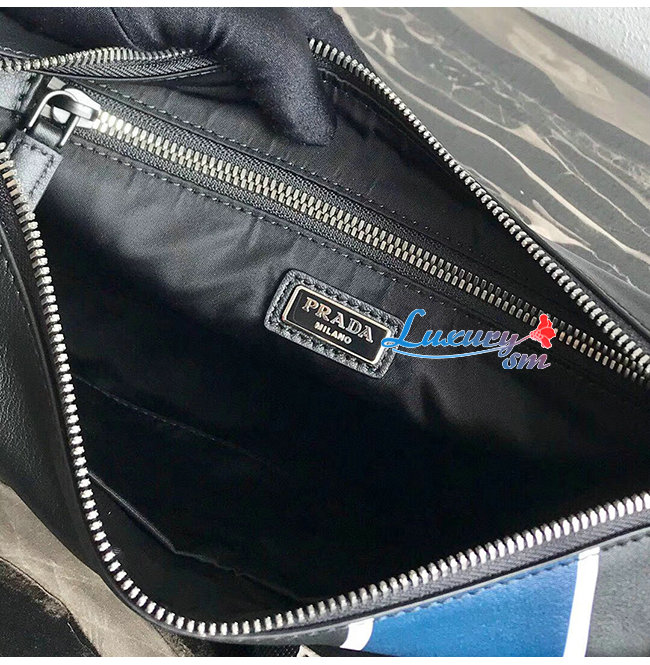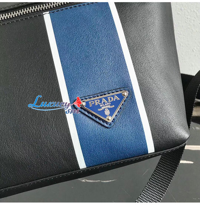 [스페셜오더]PRADA-2VH078 프라다 블랙/콘플라워 블루 송아지 가죽 밴돌리어백