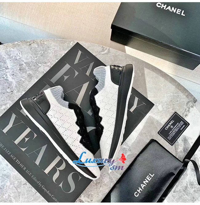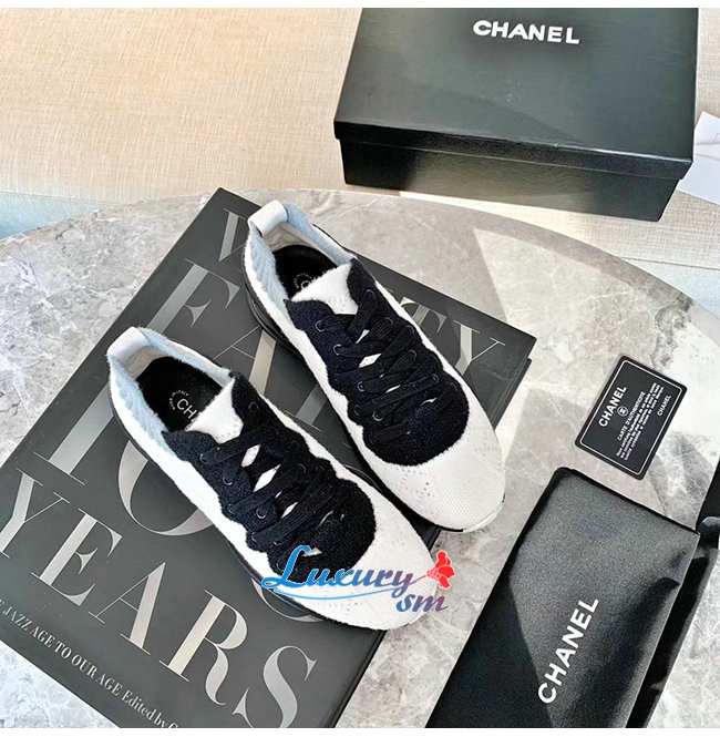CHANEL-G35199 샤넬 화이트/블랙 믹스드 파이버 스니커즈