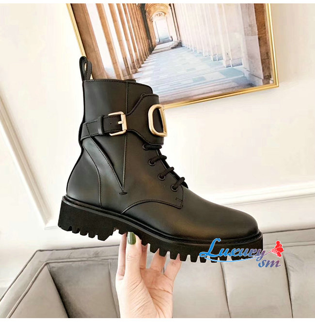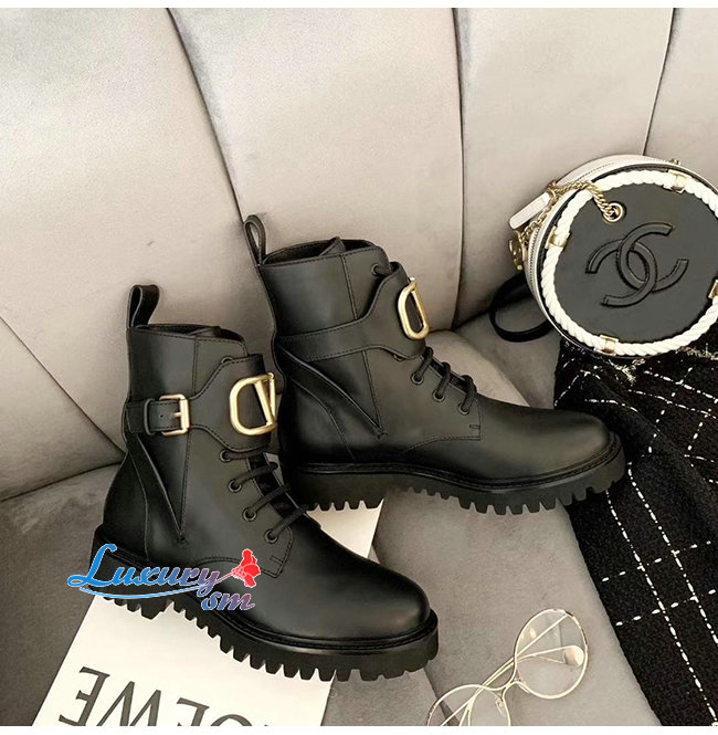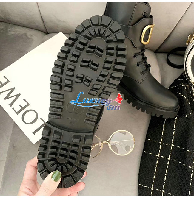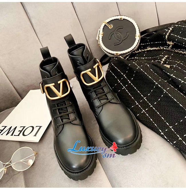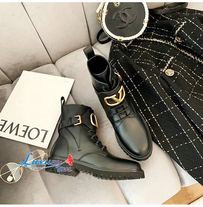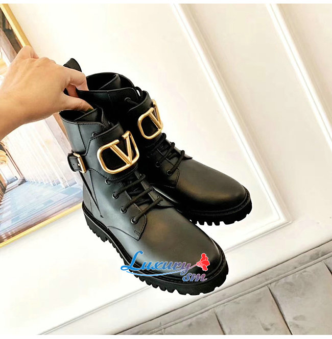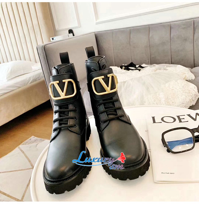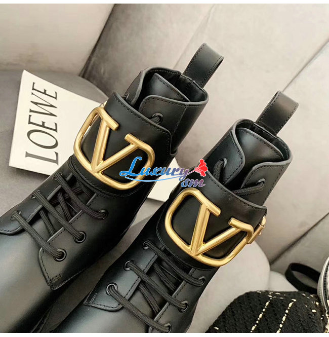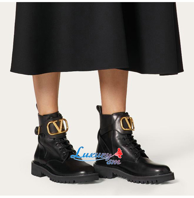 VALENTINO-SW2S0Q 발렌티노 블랙 송아지 가죽 메탈 VLOGO 컴뱃 부츠