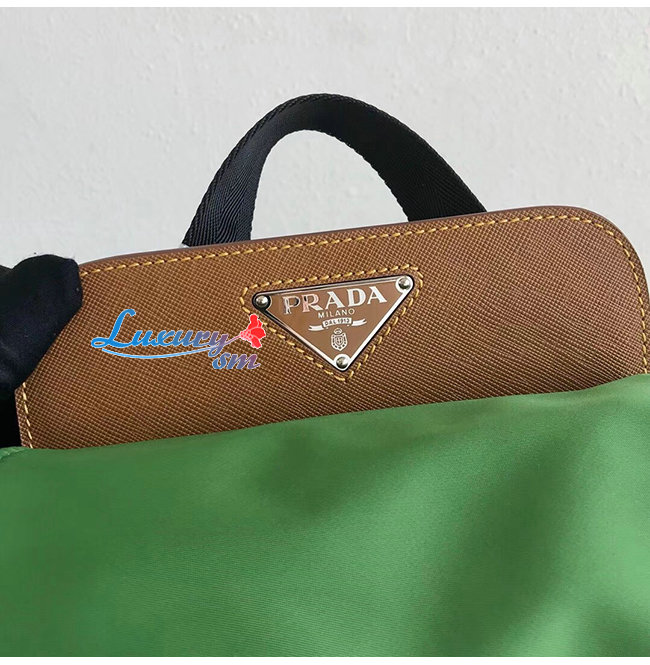 [스페셜오더]PRADA-1BZ064 프라다 그린/캐러멜 나일론 사피아노 가죽 백팩