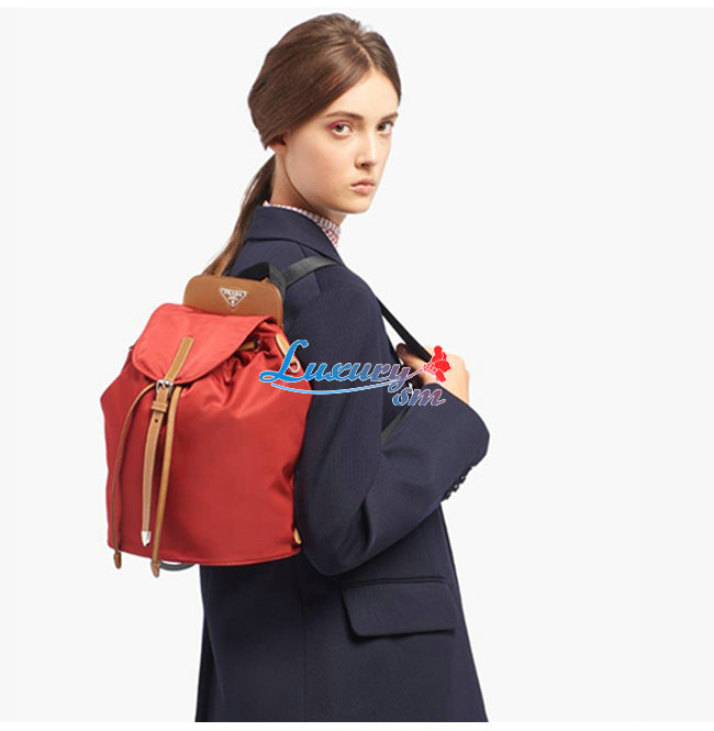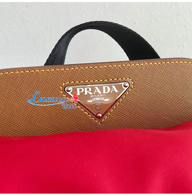 [스페셜오더]PRADA-1BZ064 프라다 레드/캐러멜 나일론 사피아노 가죽 백팩
