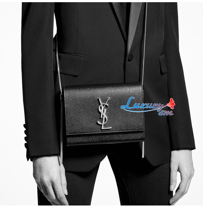 금속 YSL 이니셜로 장식 된 플랩이있는 세인트 로랑
